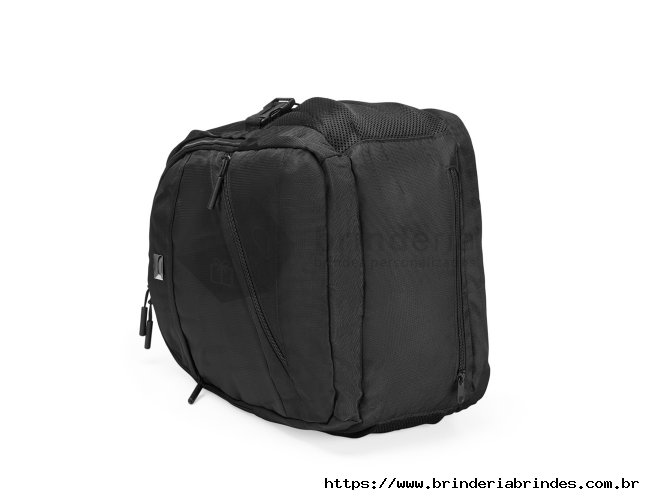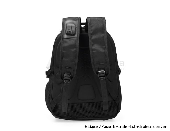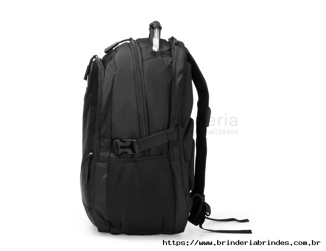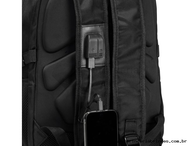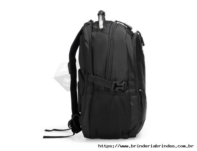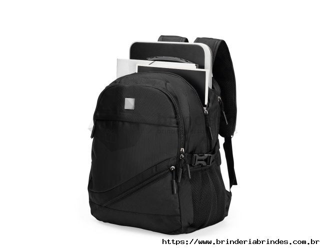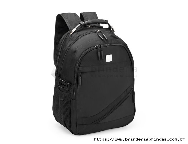 Mochila confeccionada em PVC Jacquard com mescla em seda, resistente à água, fechamento em zíper no compartimento principal e capacidade de até 23 litros. Possui uma placa metálica para personalização, três compartimentos frontais, dois bolsos laterais em tela de nylon e bolso traseiro para notebook de até 15,3 polegadas. Conta ainda com engates laterais ajustáveis, alça superior em plástico e silicone, alças acolchoadas, adaptadores USB e P2 e painel traseiro estofado. Acompanha capa protetora em tecido sintético.
