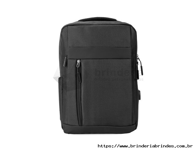 Mochila em nylon Oxford impermeável com detalhes em couro sintético, capacidade para até 14 litros, fechamento em zíper com puxadores em plástico e nylon. Possui compartimento interno com bolsos de tamanhos variados e divisória para notebooks de até 15,6 polegadas. Apresenta dois compartimentos frontais com abertura lateral, além de entrada para cabo USB e bolso lateral aberto. Dispõe também de alça de mão em poliéster reforçado e duas alças para as costas com revestimento em espuma respirável.