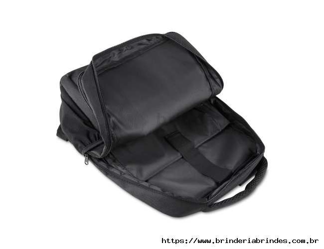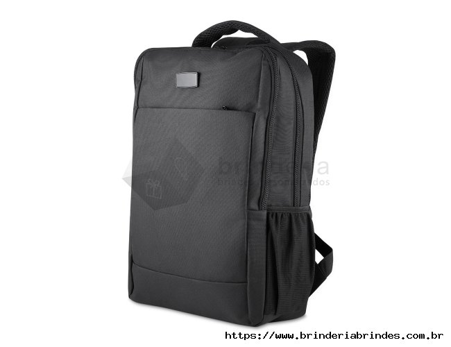 Mochila confeccionada em poliéster 210D impermeácom fechamento em zíper e capacidade máxima de 16 litros. Possui compartimento interno com divisória para notebooks de até 15,6 polegadas. Conta ainda com dois compartimentos frontais em tamanhos diferentes e dois bolsos laterais em malha com elástico. Dispõe ainda de engate para malas e revestimento em tecido acolchoado respirável na região posterior, nas alças de ombro e na alça superior de mão. Acompanha plaquinha metálica fixa personalizável.