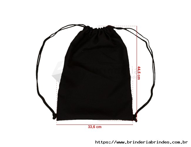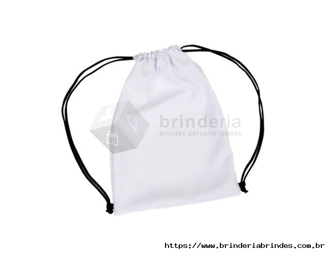 Mochila saco de microfibra com alças reguláveis.