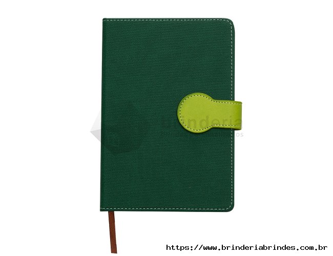 Caderneta sintética com fechamento imantado, contém aproximadamente 96 folhas amarelas sem pauta e marcador de página em cetim.