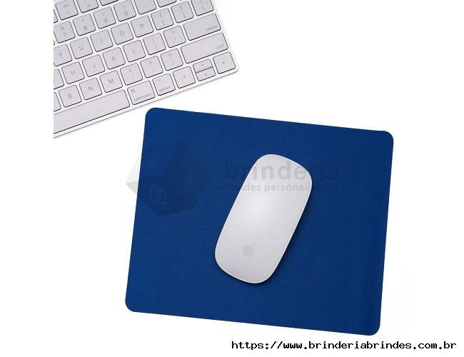 Mouse pad retangular de tecido, parte inferior emborrachada para evitar deslizamento.