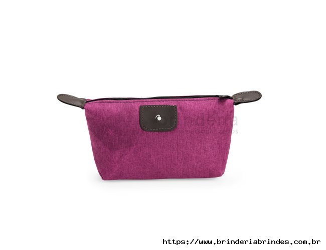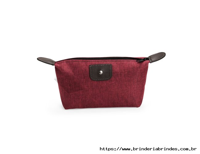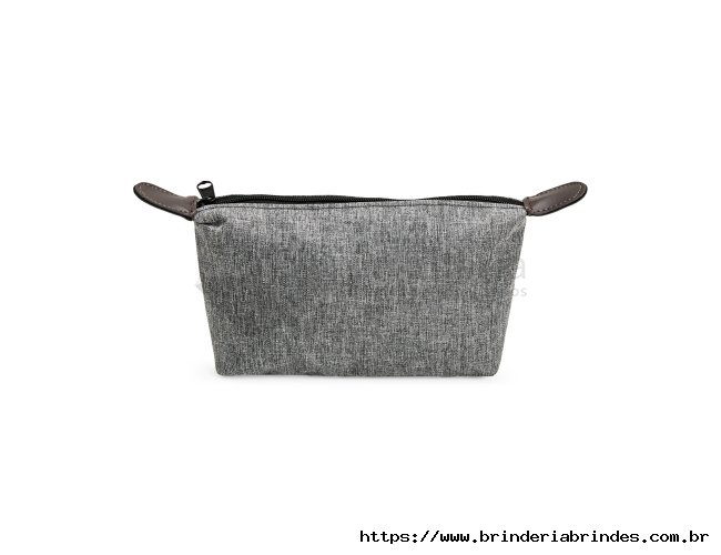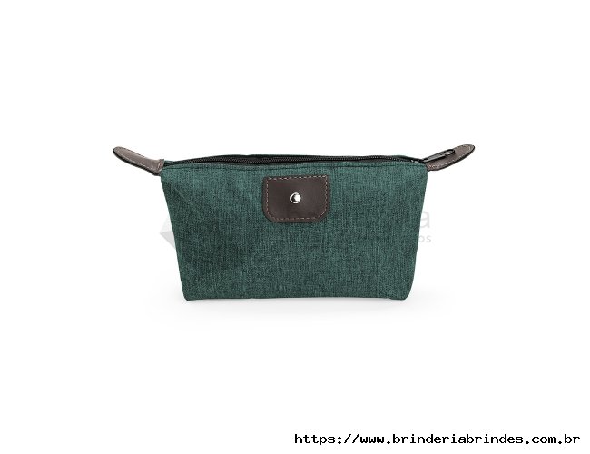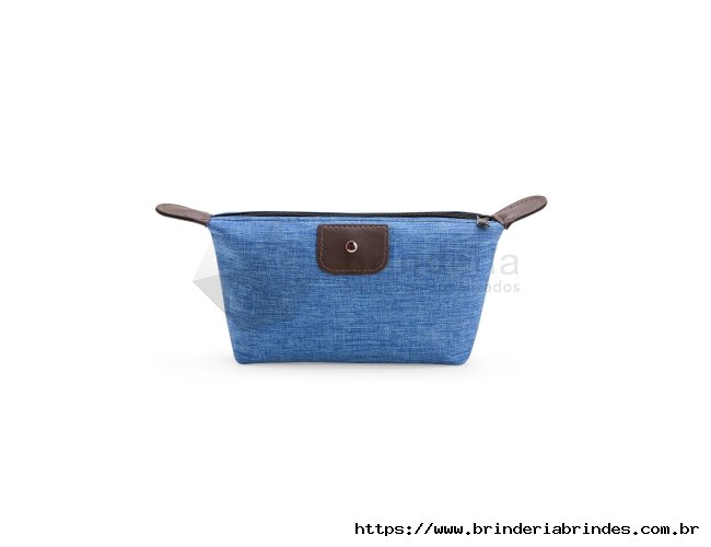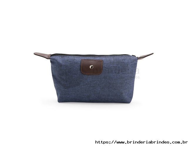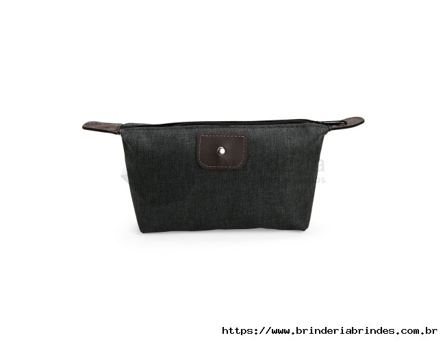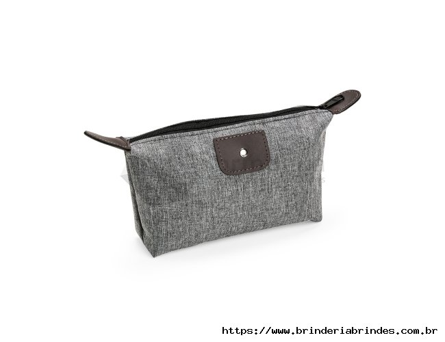 Nécessaire compacto confeccionado em Poliéster com mescla de PVC resistente à água, com fechamento em zíper e detalhes em bidim e metal.
