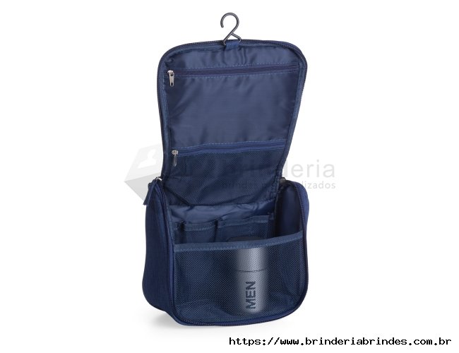 Nécessaire organizadora em tecido nylon Oxford, possui bolso frontal e alça superior, parte interna com gancho plástico; bolso interno superior em nylon e bolso de tela ambos com zíper; bolso inferior aberto de tela com 4 divisões de bolsos também em tela. Perfeita para lhe acompanhar em viagens e até mesmo transportar seus itens pessoais do dia a dia com organização e praticidade.