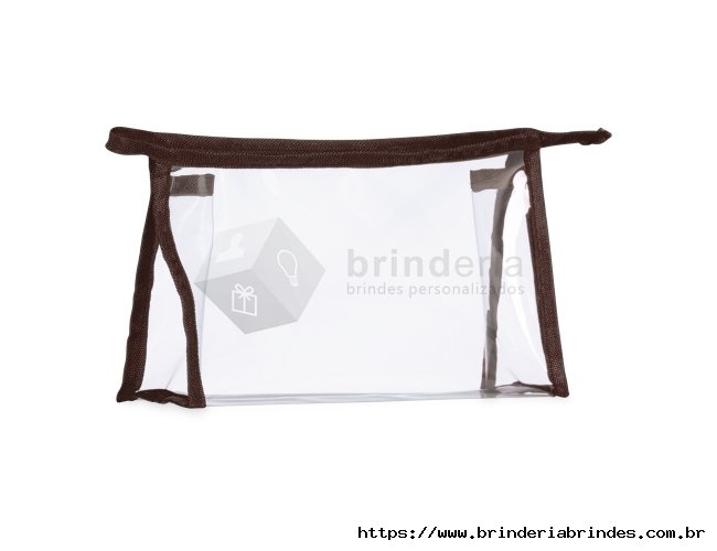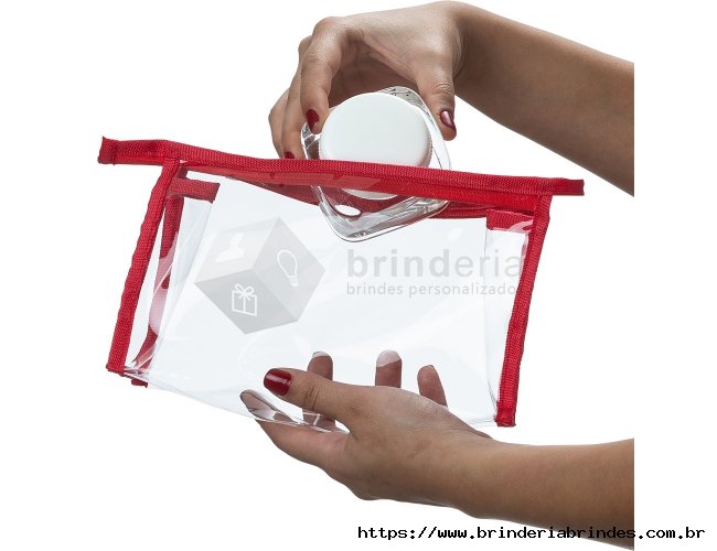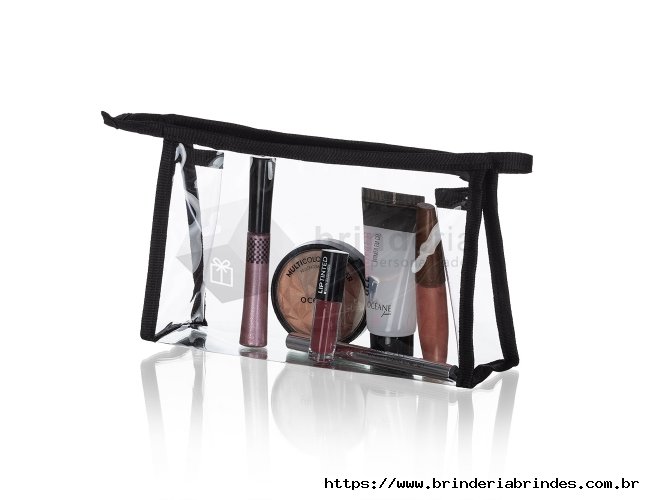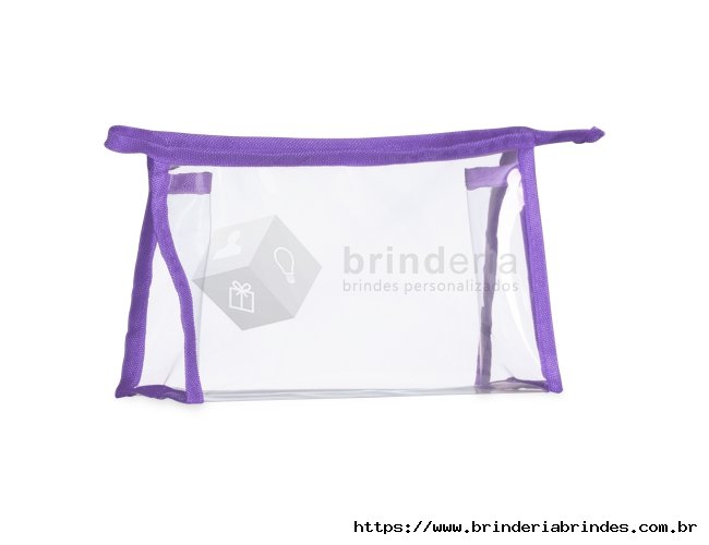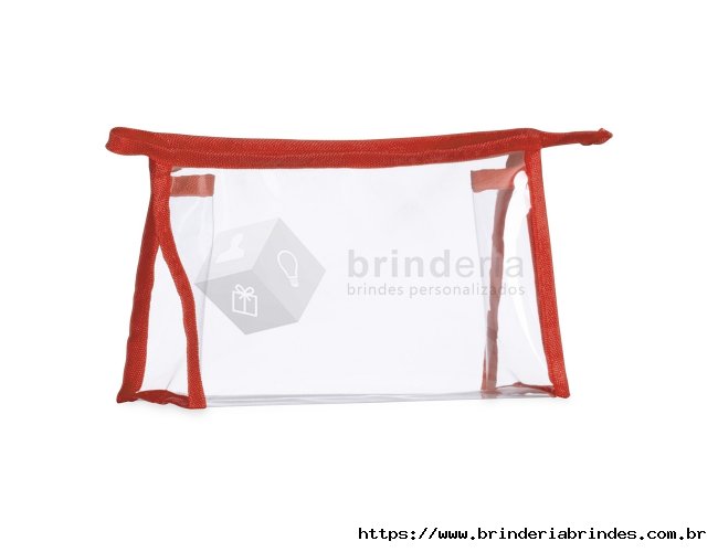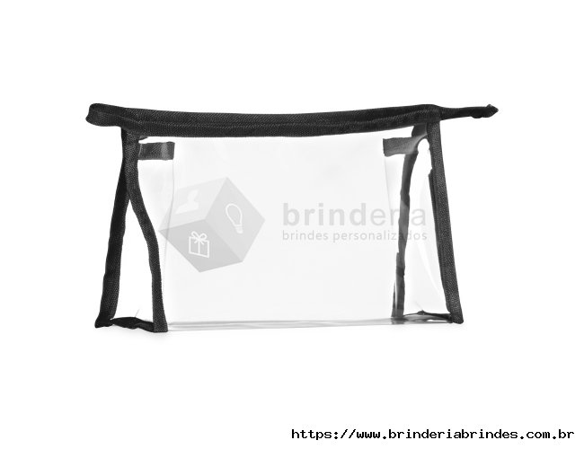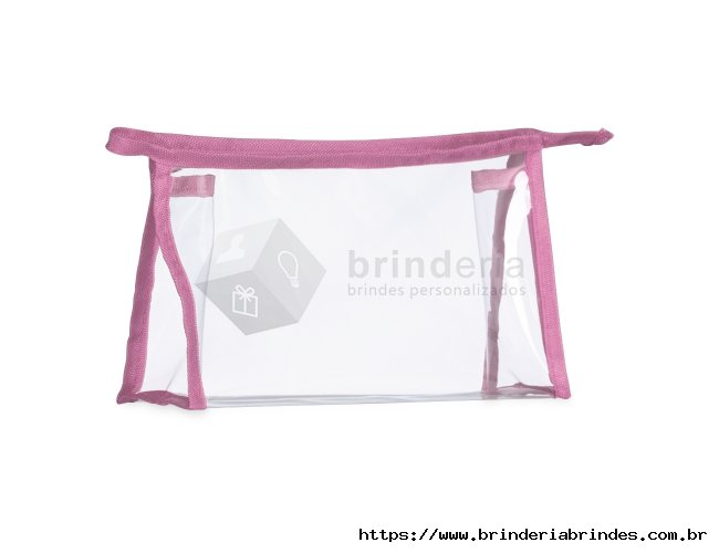 Necessaire plástica transparente com detalhe colorido em nylon.