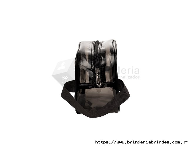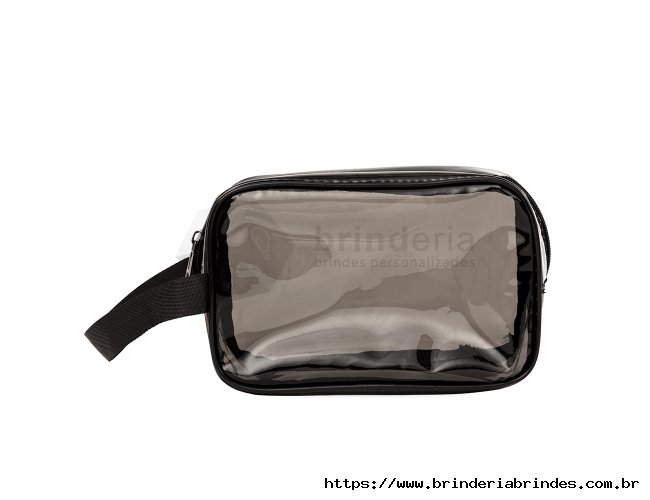 Nécessaire impermeável em PVC com fechamento em zíper e alça lateral em nylon.