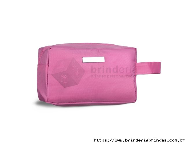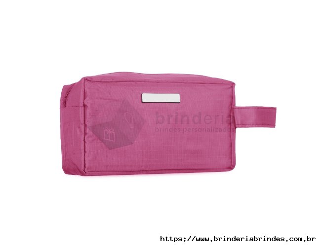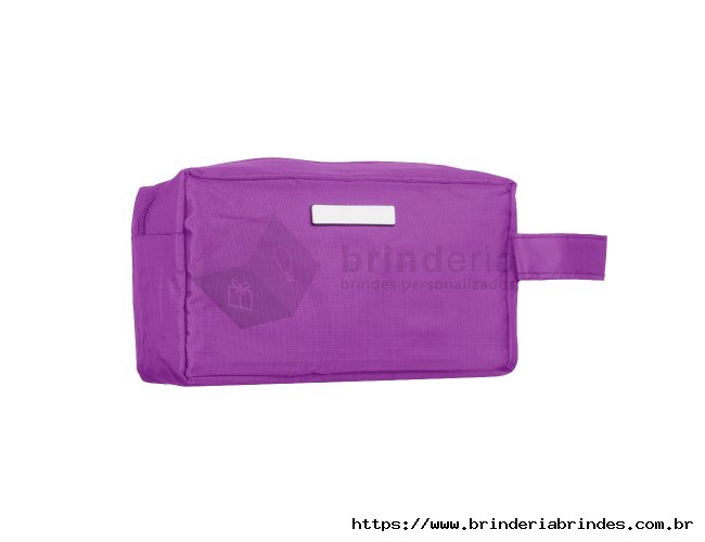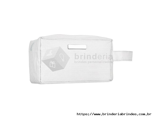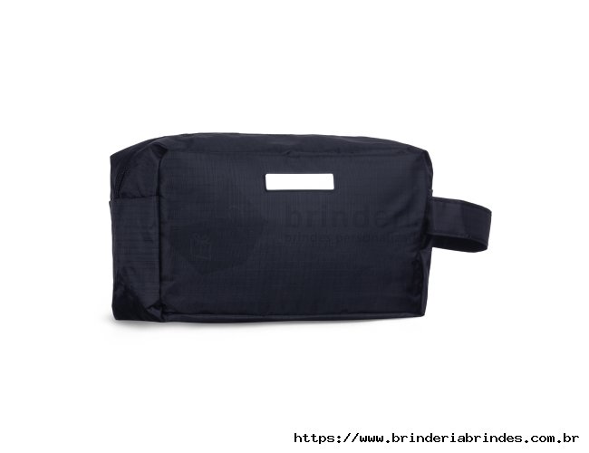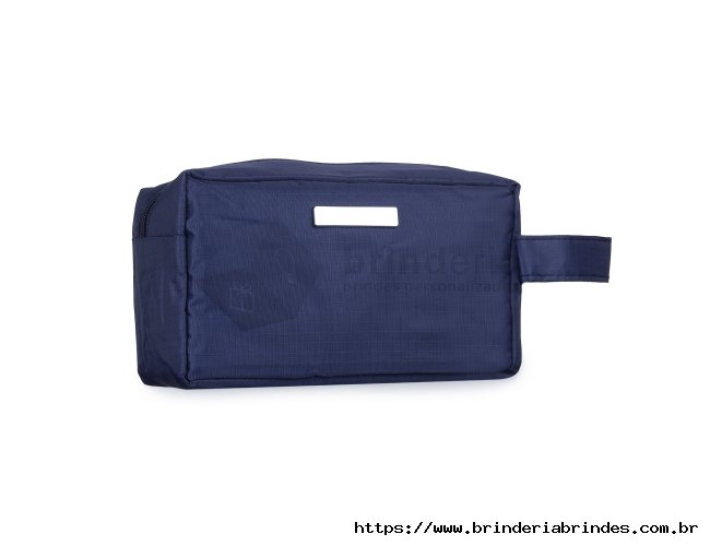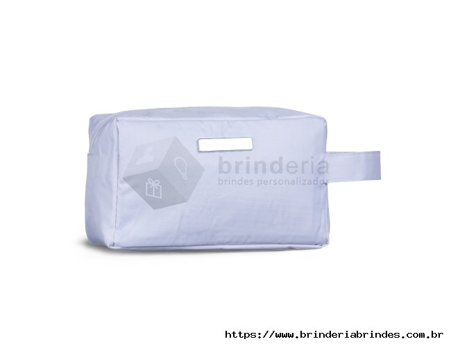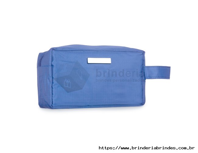 Necessaire impermeável de pvc com plaquinha metálica para personalização, possui alça lateral, zíper e forro de poliéster.