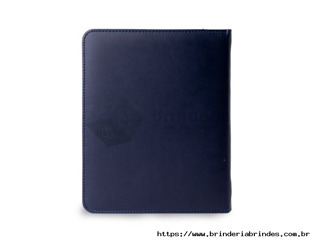 Pasta caderno de couro sintético com zíper. Possui 2 compartimentos para arquivar documentos e suporte para caneta (não acompanha caneta). A pasta contém caderno de capa dura em couro sintético, com aproximadamente 100 folhas.
