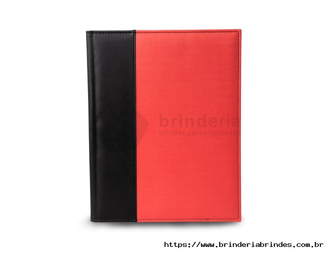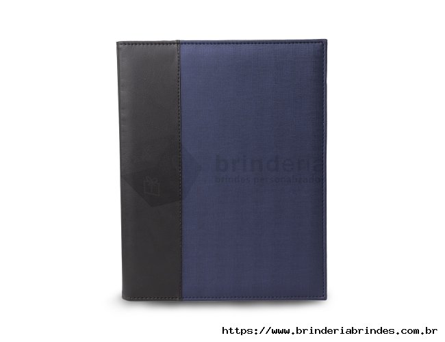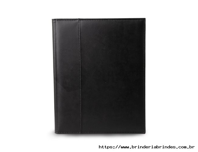Pasta convenção de couro sintético, possui porta caneta, dois compartimentos, sendo um para arquivar documentos e um bloco com aproximadamente 15 folhas brancas não pautadas.
