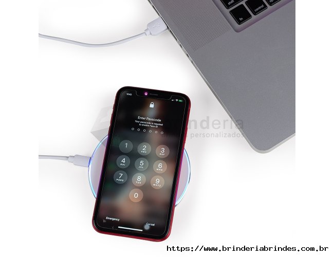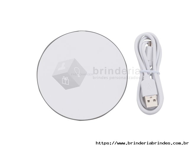 Carregador rápido por indução feito em plástico com base antiderrapante em silicone. Compatível com smartphones com tecnologia Qi, conta com entrada Micro USB para alimentação, além de iluminação RGB nas bordas. Acompanha cabo Micro USB.