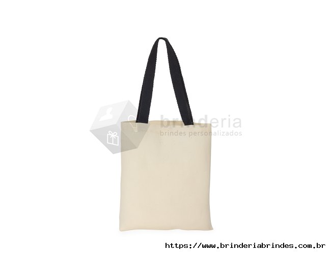 Sacola confeccionada em algodão 220 g/m² com alças de algodão trançado.