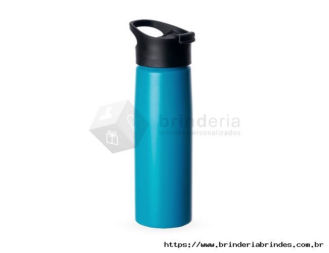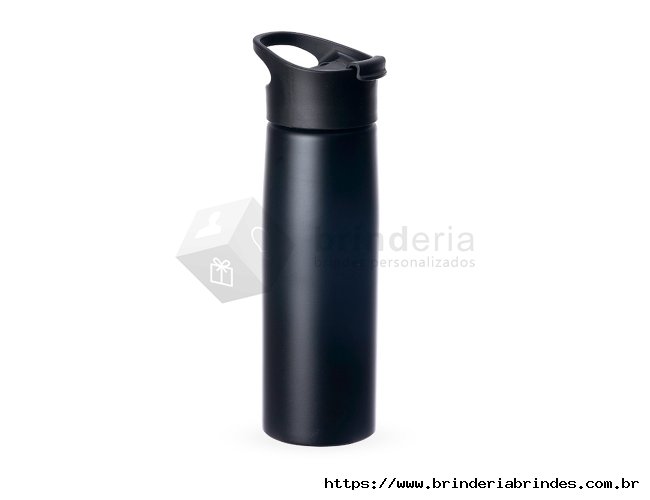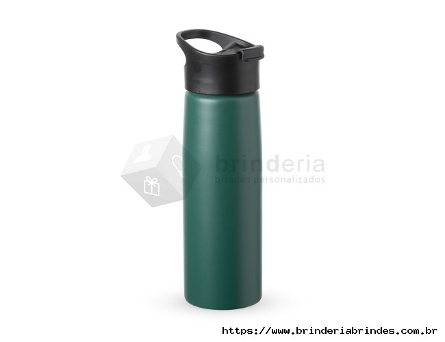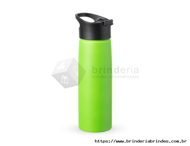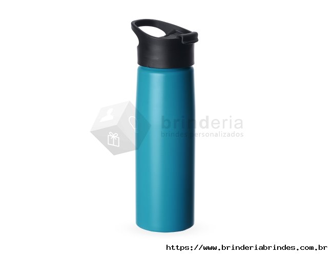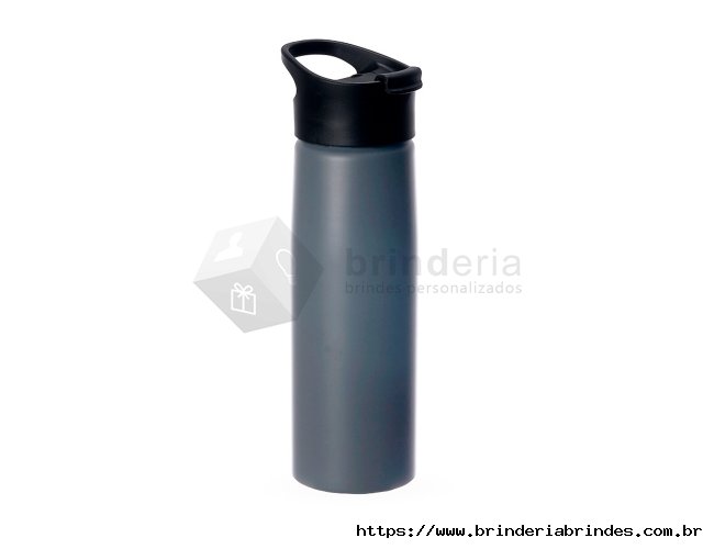 Squeeze alumínio de 750ml com pintura fosca. Squeeze com tampa plástica rosqueável, alça e tampa protetora para o bocal.
