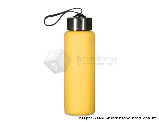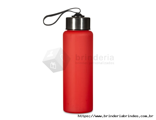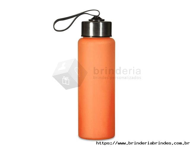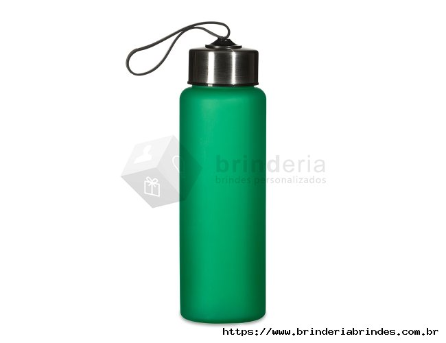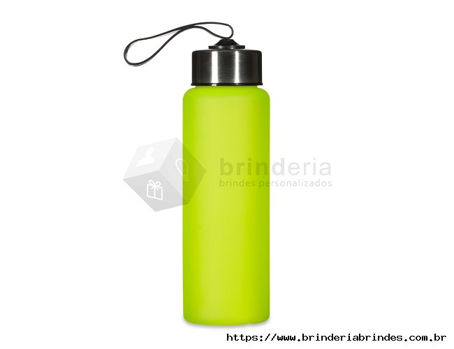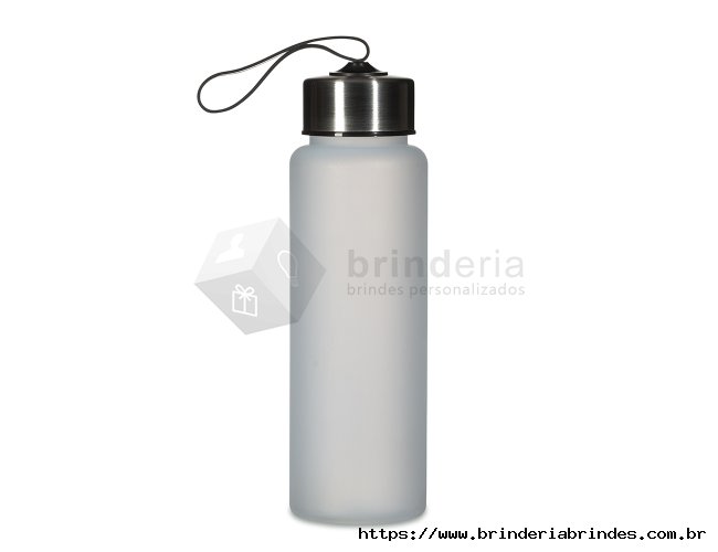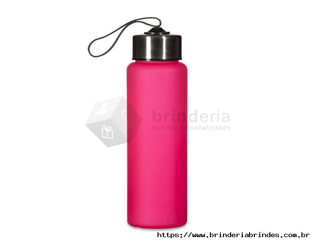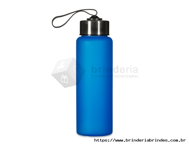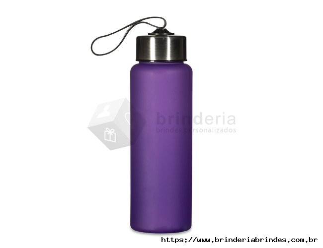 Garrafa plástica de 680ml. Produzido em PVC fosco livre de BPA, a squeeze possui tampa rosqueável em inox com alça elástica para transporte (não removível).