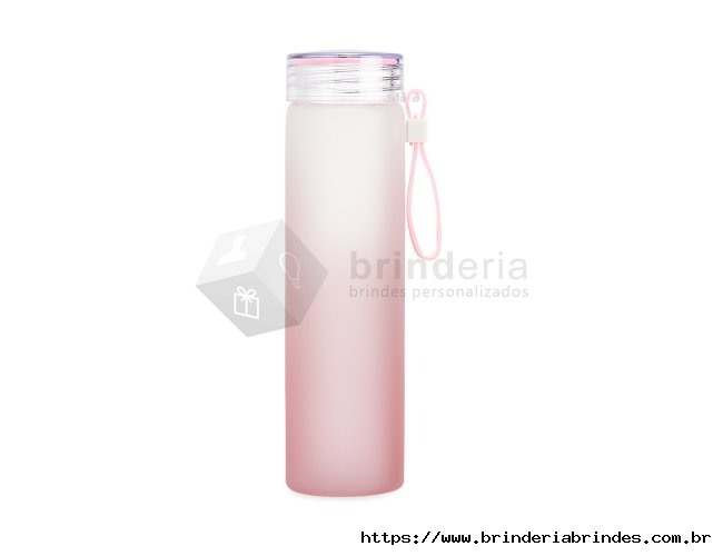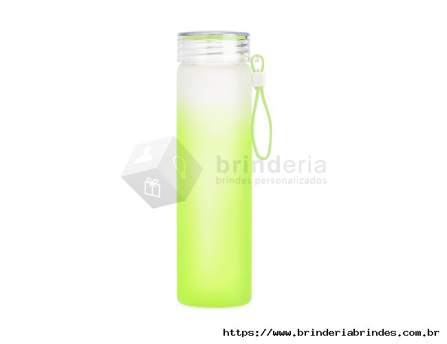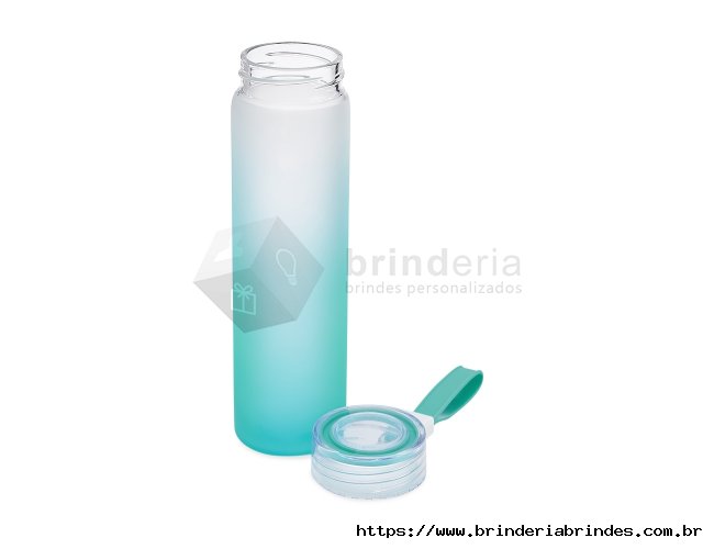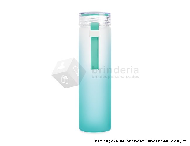 Garrafa de vidro jateado bicolor, capacidade de 450ml. Contém alça de silicone.