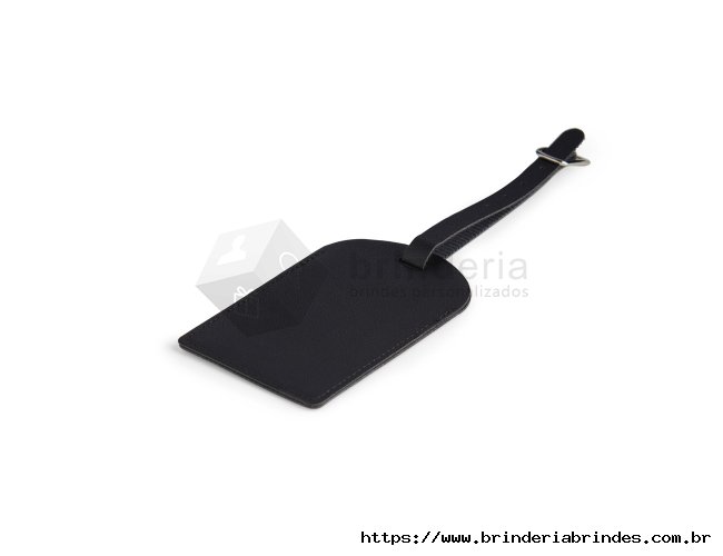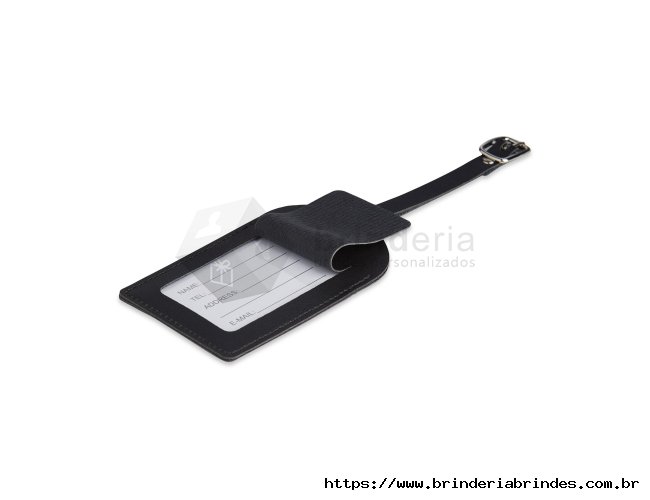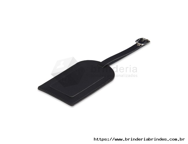 Tag identificador de bagagem em couro sintético. Parte frontal com abertura para visor plástico e verso liso, possui fivela regulagem.