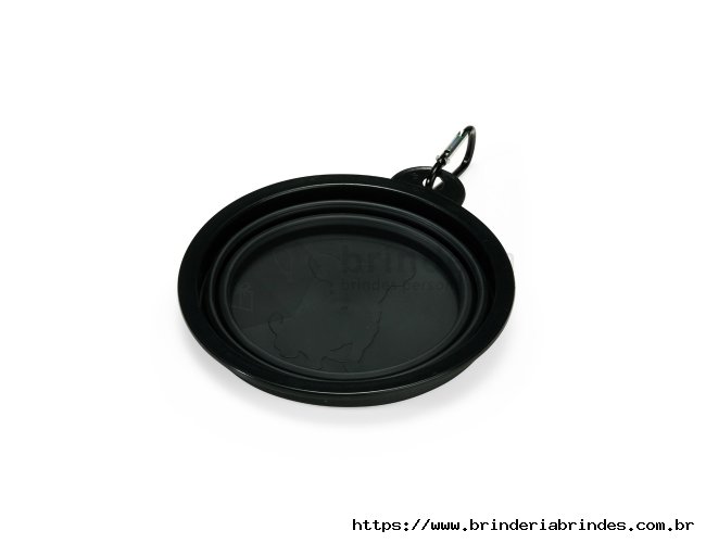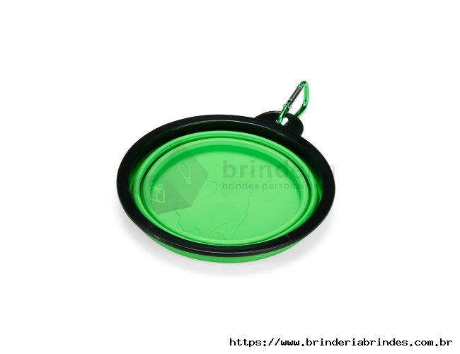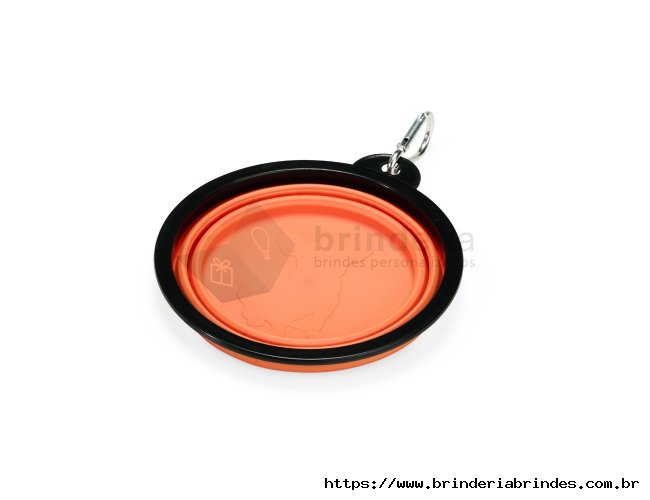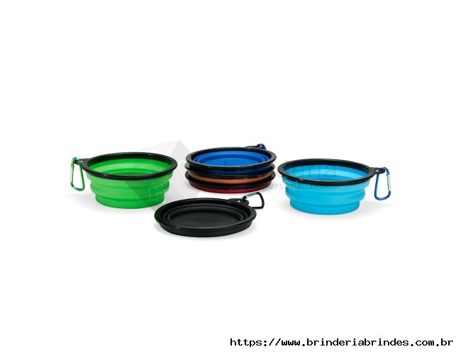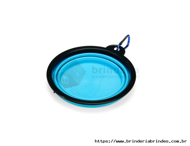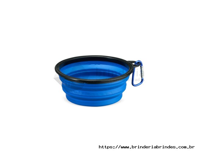 Tigela retrátil para pets feita em silicone com borda plástica equipada com encaixe para mosquetão e capacidade de até 350ml. Acompanha mosquetão metálico para facilitar o transporte.