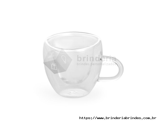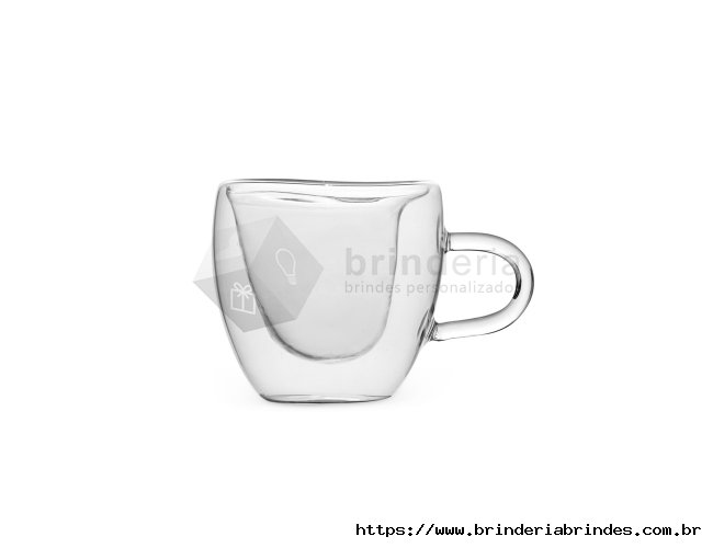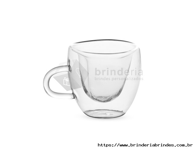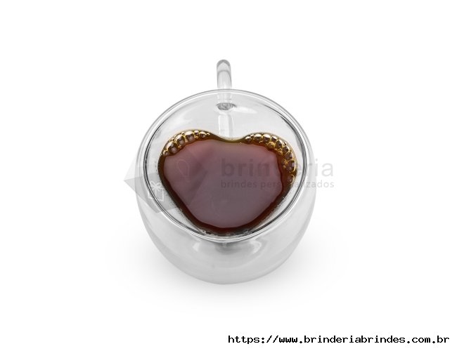 Xícara de vidro com capacidade para até 80ml. Possui contorno interno em formato de coração e estrutura de parede dupla que ajuda a impedir que a temperatura de líquidos entre em contato com a parte externa.